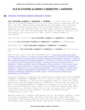 Download Answers Ple Platoweb For Algebra 1 PDF online is a convenient and frugal way to read Answers Ple Platoweb For Algebra 1 you love right from the comfort of your own home. Yes, there sites where you can get PDF "for free" but the ones listed below are clean from viruses and completely legal to use.